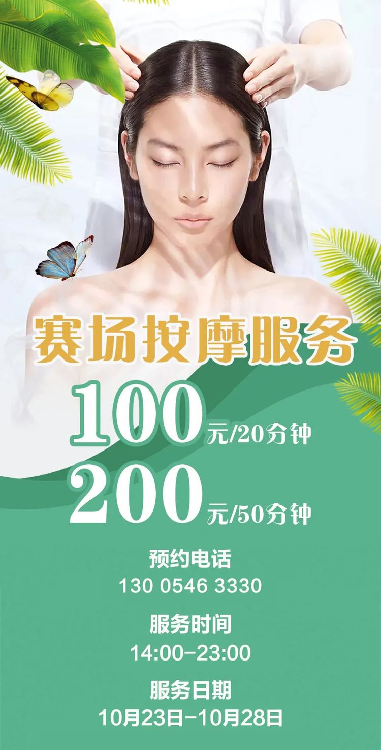 参赛运动员可在赛场内通过CPG APP首页的“按摩”功能里的电话预约赛场按摩服务。